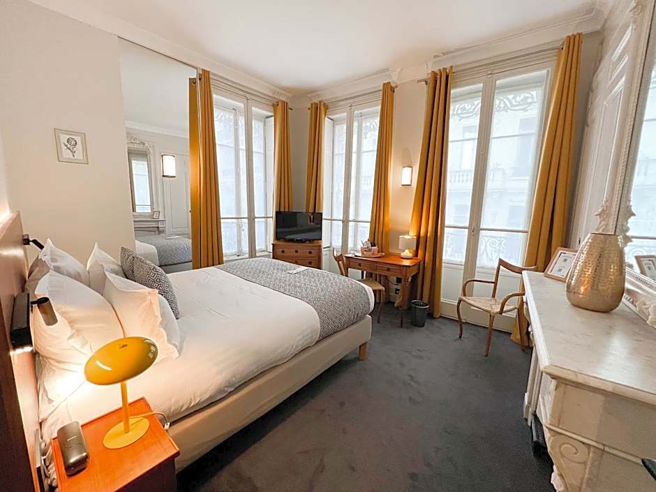The Superior room is perfect for a stay of several days for two people. All styles are available, and no room looks like another: characteristic Lyon charm with wood floors, simple and sleek or spacious and functional. A queen size bed (63 in) will be waiting for you, (or 2 single beds on request), a desk and a TV. The bathroom is equipped with either a shower or a bath.