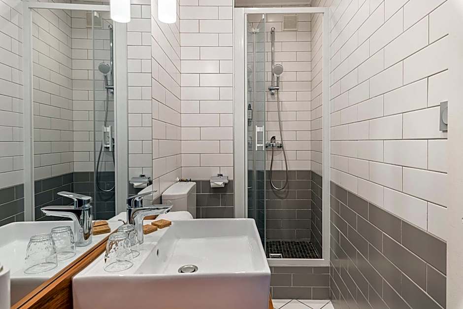 The classic double room is ideal for a stay of one or two nights for two people. Rather intimate, the room is equipped with a double bed (55 in), a desk, and a bathroom with shower. It is possible to request 2 single beds (subject to availability). All our classic rooms have a different style, and are equipped with a unique and authentic decoration.